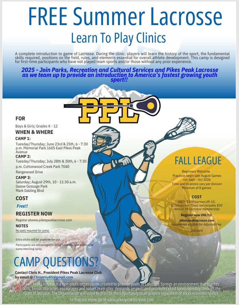 The Pikes Peak Lacrosse Sharpshooters have been serving the Colorado Springs and surrounding communities since 2009.